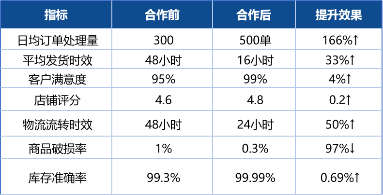 · 發(fā)貨及時(shí)率100%、發(fā)貨準(zhǔn)確率99.99%、庫(kù)存準(zhǔn)確率99.99%