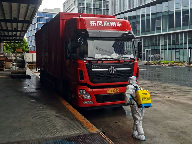 外來車輛到大門口后,先進行全車消殺,等待30分鐘后入倉